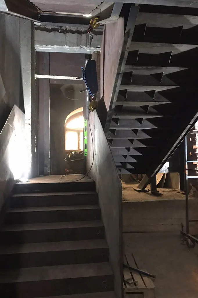 Разработка чертежей КМД, изготовление металлоконструкций лестниц, доставка до объекта, монтаж металлоконструкций лестниц.