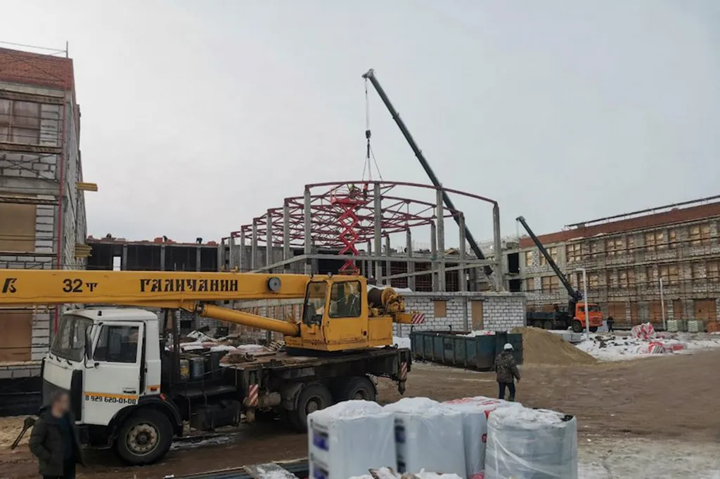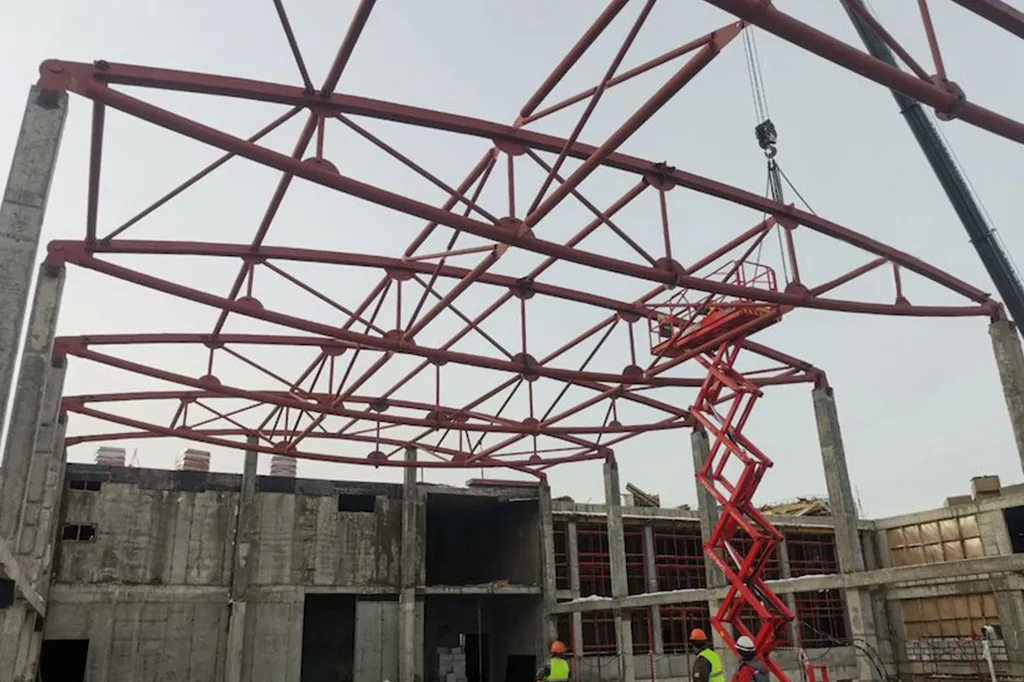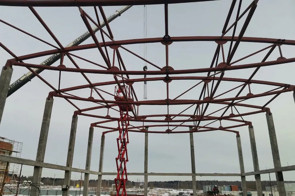 Монтаж металлоконструкций покрытия.