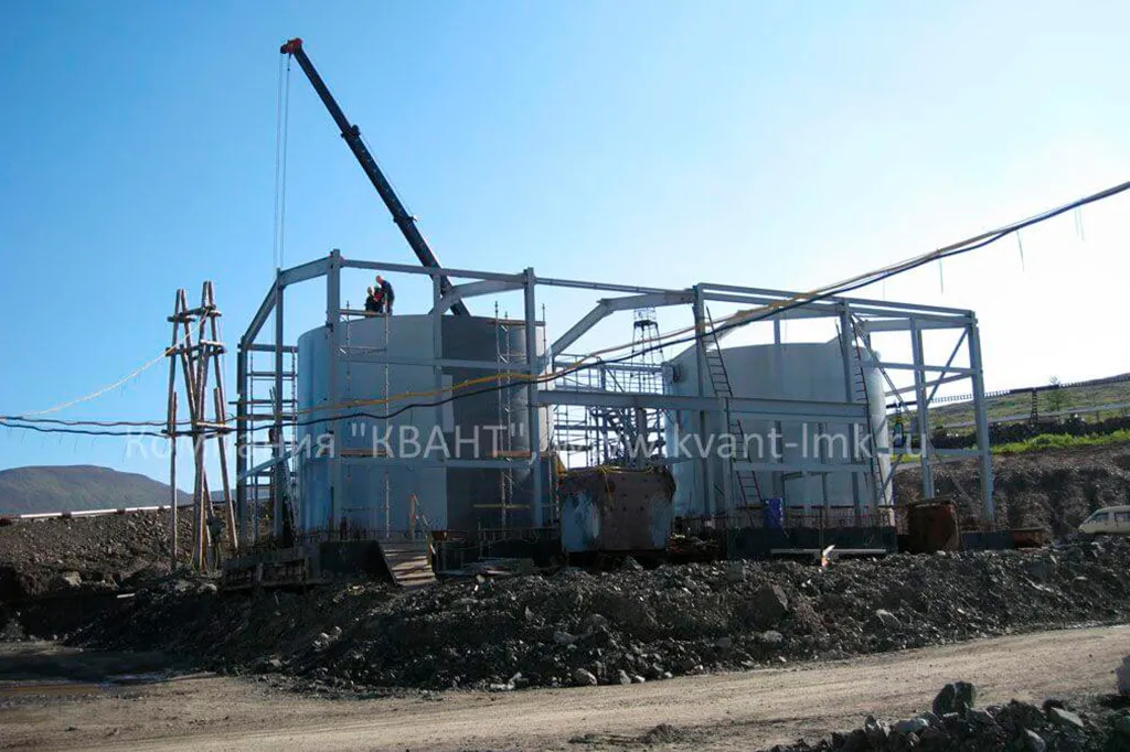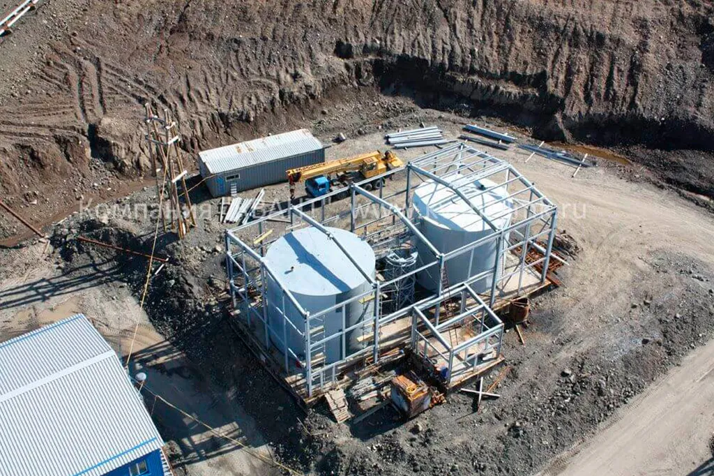 Возведение специализированного здания, оснащенного насосным оборудованием, резервуарами для хранения воды, системой автоматического управления и другими необходимыми элементами, спроектированного для обеспечения постоянной готовности к тушению пожаров и защиты персонала и оборудования на руднике «Скалистый».