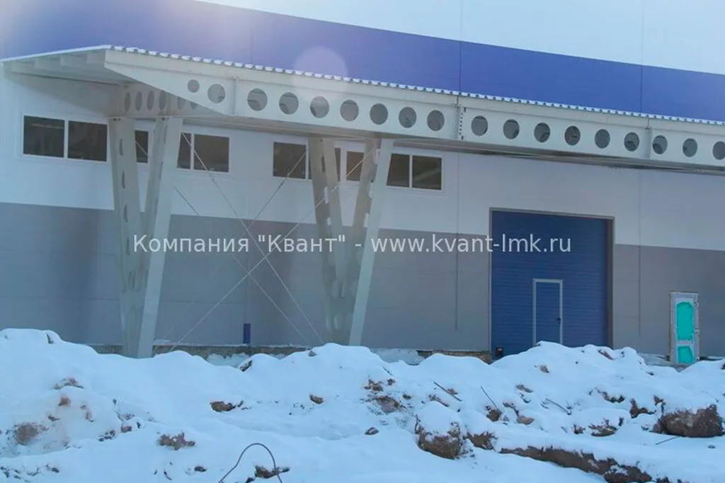В различных индивидуальных проектах применяют сварные двутавры сложного профиля. Платформа для установки спецоборудования Для уменьшения веса металлоконструкций и снижения нагрузки на фундаменты, изготавливают сварные двутавры с перфорированной стенкой. Конструкция навеса входной группы производственного корпуса выполнена из двутавров сложного сечения с перфорированной стенкой. Такая конструкция оживляет фасад здания и является архитектурным элементом, связывающим в единое целое отдельные сооружения, входящие в производственный комплекс.